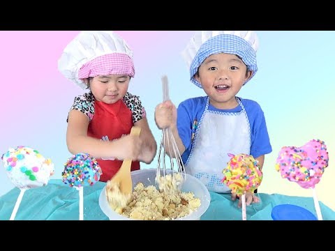 Cake Pops For Kids }}- Melody, Ivan and mommy bake and make cake pops for Valentines Day. Melody and Ivan loves to learn, decorate, and pretend to be a baker. Family fun time.