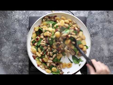 One Pan Gnocchi with Sundried Tomatoes & White Beans - Bean Gnocchi - A healthy vegetarian recipe for one pan gnocchi with sundried tomatoes, white beans, spinach and mushrooms! Ready in 30 minutes. FULL RECIPE: ...
