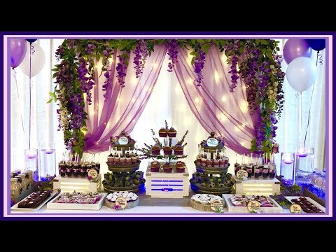 Create a Dessert Bar | Sweet 16 Birthday Wedding Dessert Table Ideas - Dessert Bar - How to create a diy stunning dessert bar table for a sweet 16 birthday, wedding or other special occasion or event w/ purple wisteria flowers, rustic white washed ...